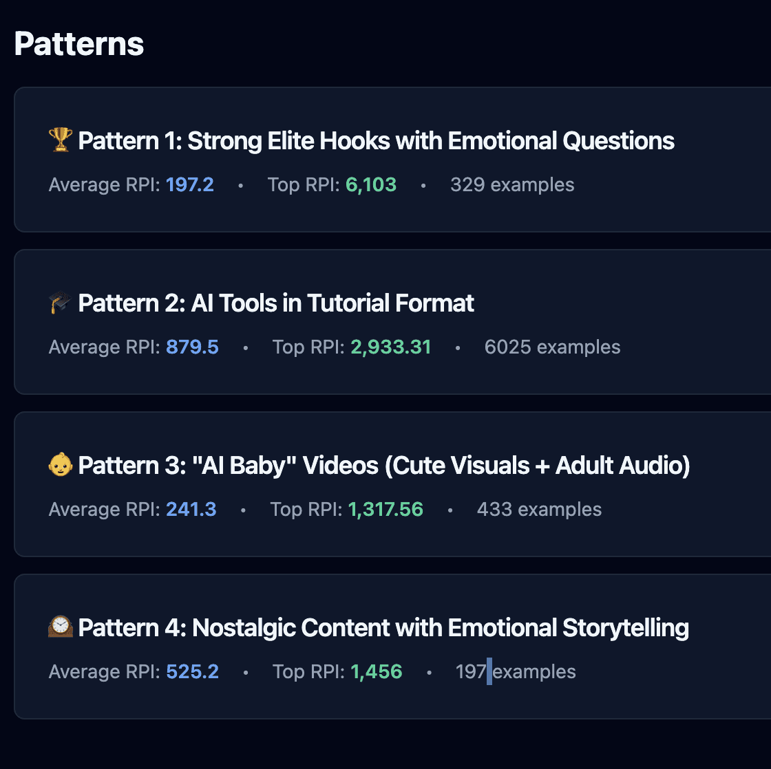 Behind every high-performing video is a repeatable formula. We analyse hook structure, pacing, cut frequency, CTAs, tone of voice, and dozens of creative signals to pinpoint what truly drives conversions in your niche